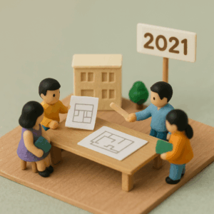 El gener de 2021 ens constituïm com a cooperativa d’habitatge, després d’una primera etapa com a associació per optar al solar del Poblenou on avui conviuen les companyes de La Balma, per optar al solar de l’Ajuntament de Barcelona situat a la cantonada dels carrers Ciutat de Granada i Pere IV, destinat a projectes d’habitatge cooperatiu en cessió d’ús.