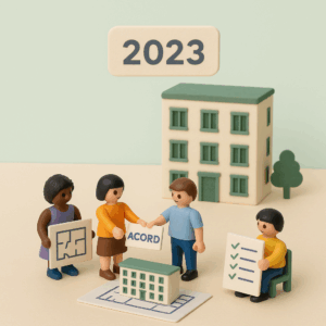 Aquesta cronologia recull les fites més destacades del camí que hem recorregut plegades des de la cessió del solar per part de l’Ajuntament de Barcelona l’any 2019 fins a l’inici de les obres i el futur accés als habitatges.